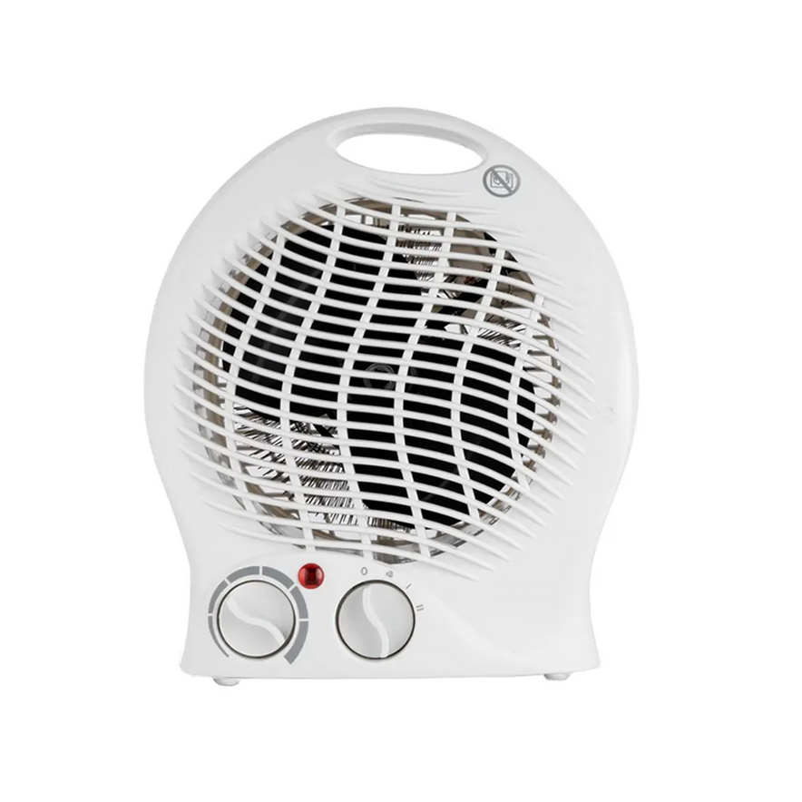 Compact fan heater for quick room warmth with adjustable heat settings.
